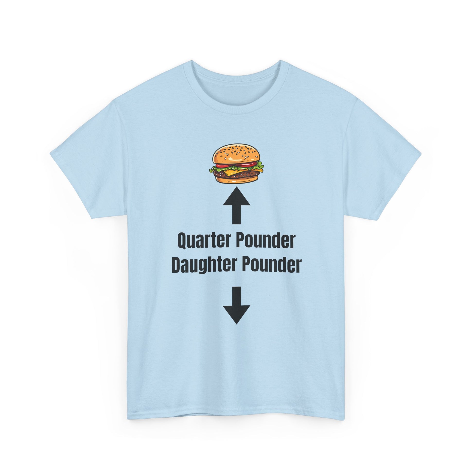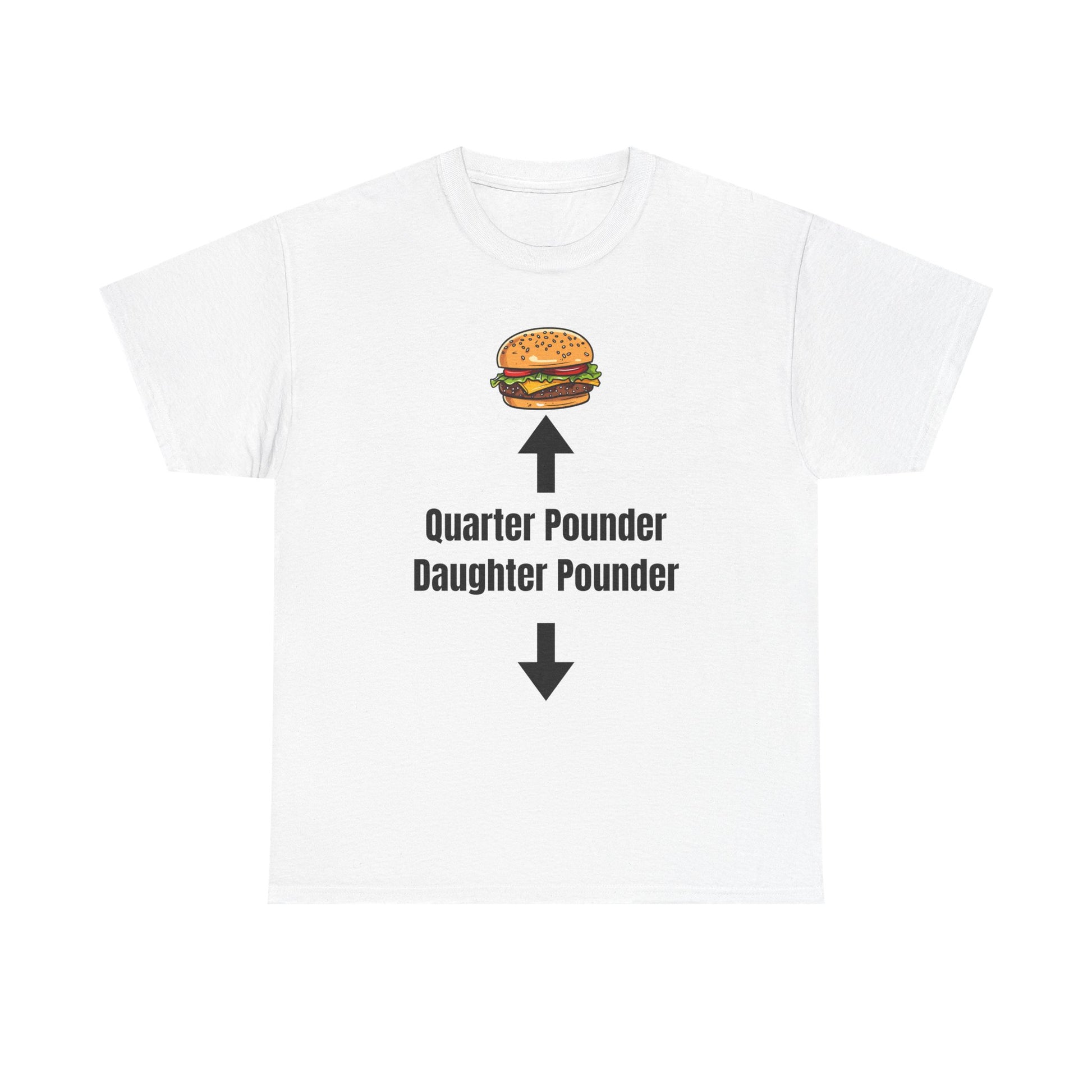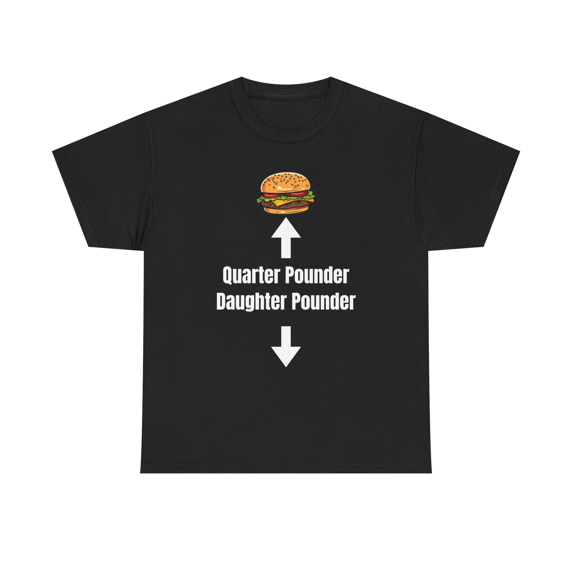 This Tee features a humorous and playful design that is perfect for those who enjoy a good pun. The Quarter Pounder or Daughter pounder design adds a fun touch to everyday outfits, making it great for casual wear or as a conversation starter. Ideal for adults looking to add a bit of humor to their wardrobe, this Tee is relevant for Father's Day, birthdays, and other casual occasions.