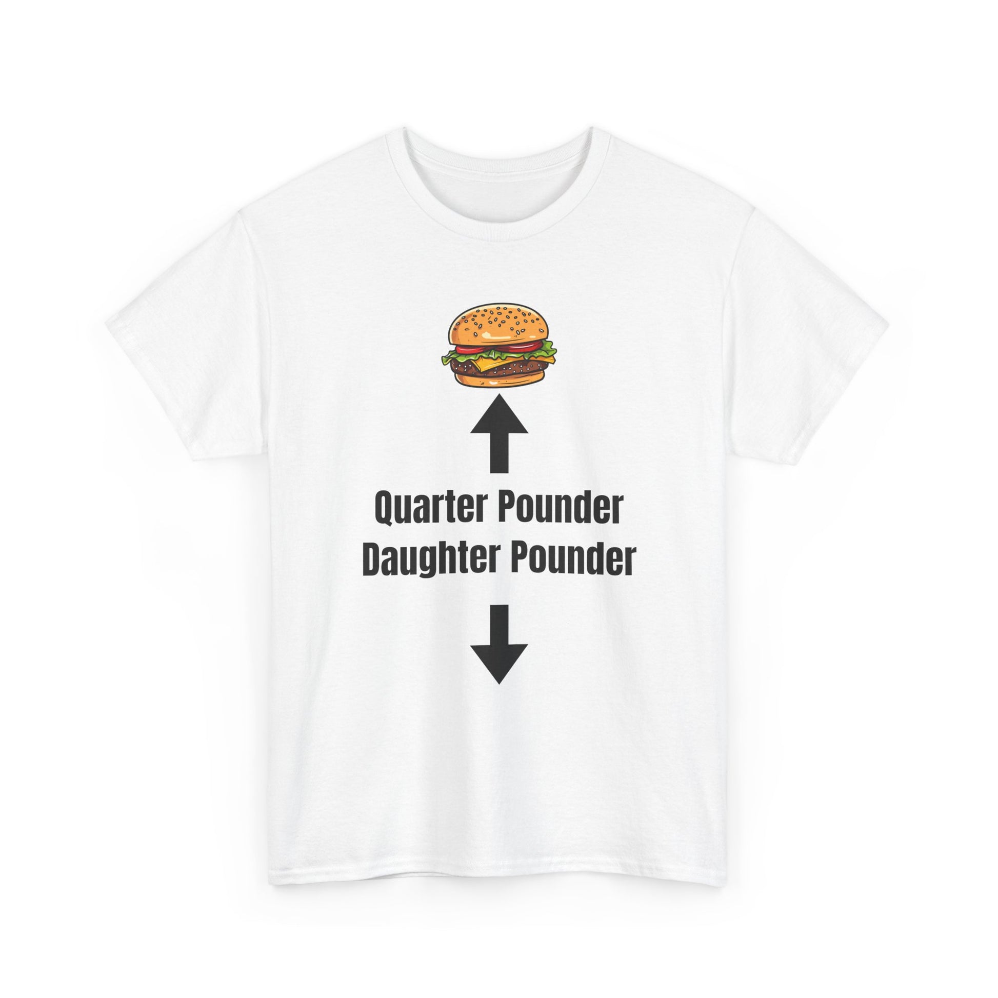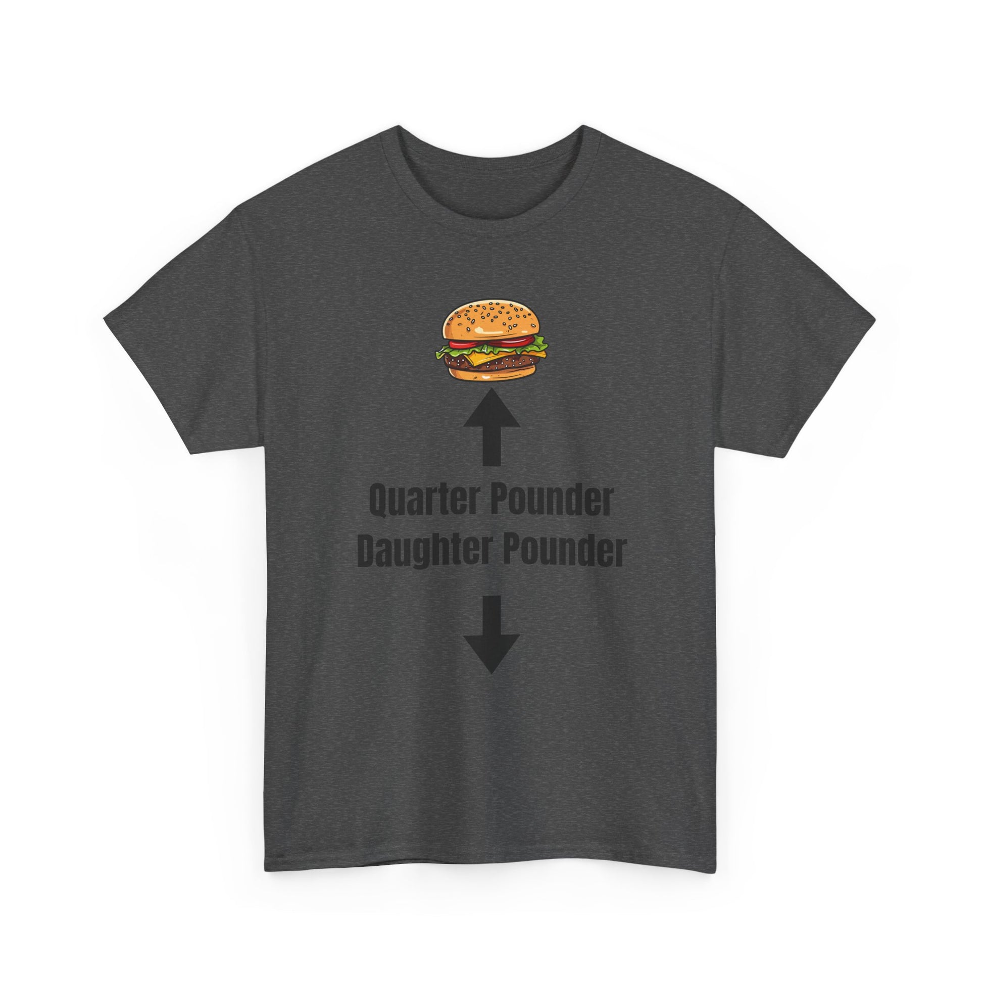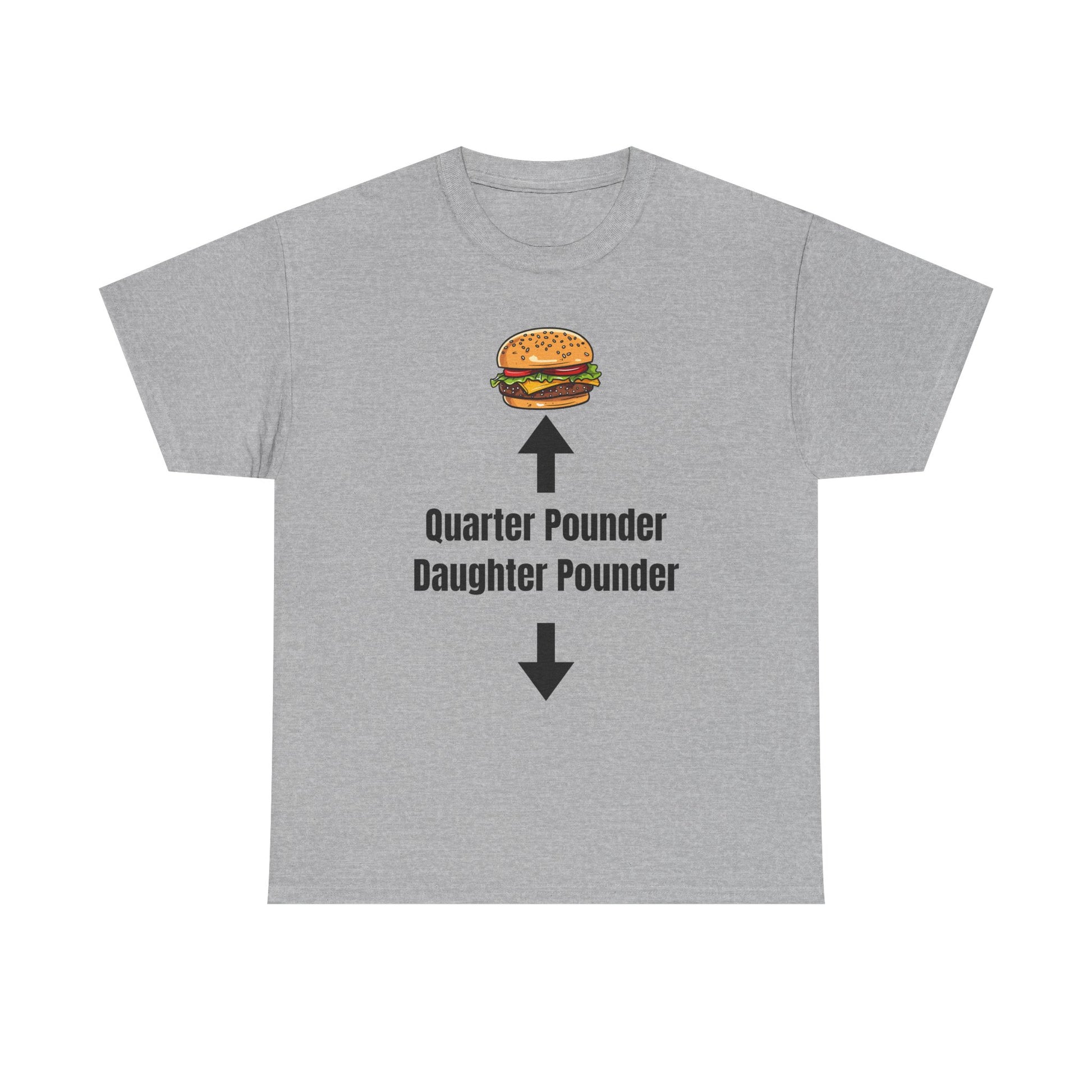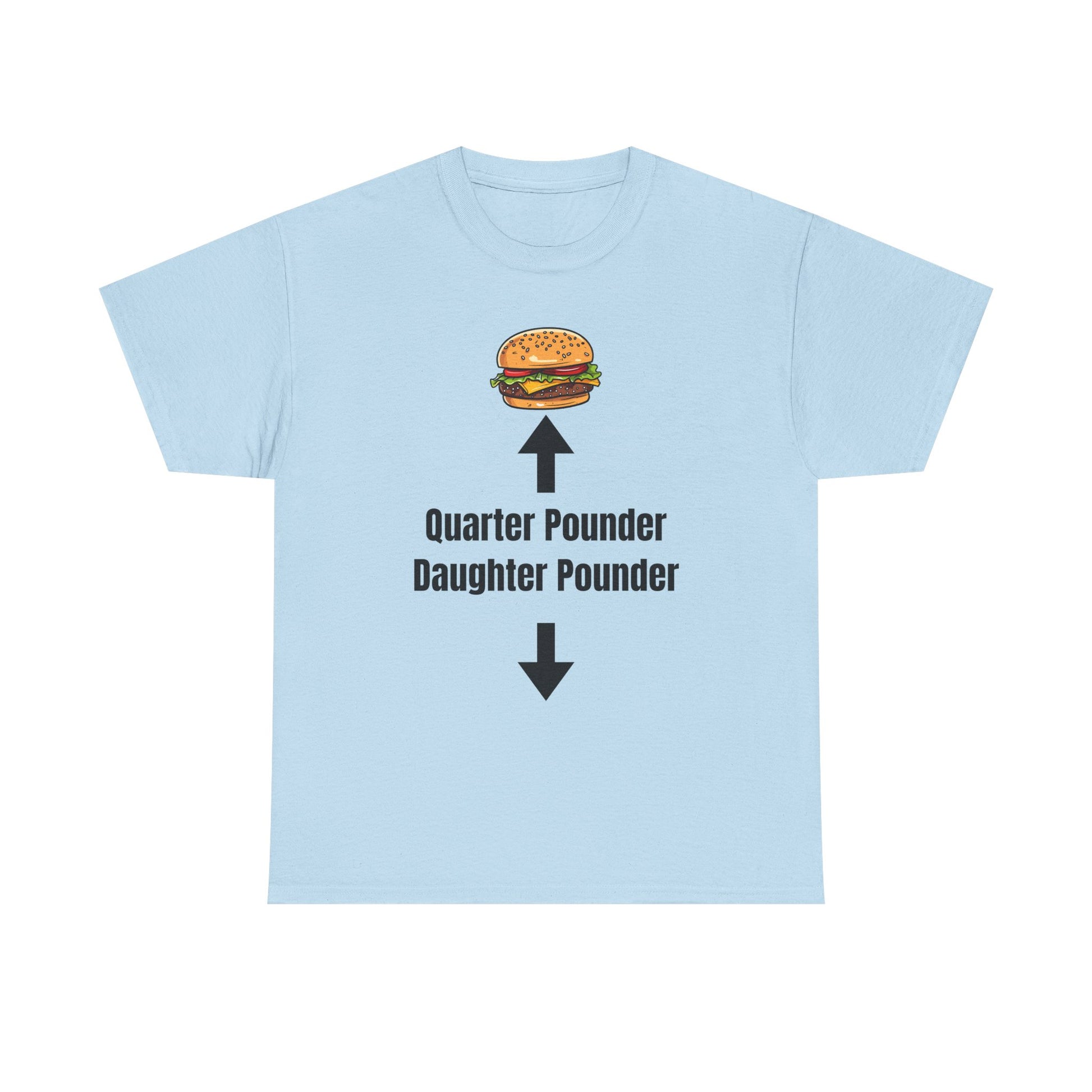 This Tee features a humorous and playful design that is perfect for those who enjoy a good pun. The Quarter Pounder or Daughter pounder design adds a fun touch to everyday outfits, making it great for casual wear or as a conversation starter. Ideal for adults looking to add a bit of humor to their wardrobe, this Tee is relevant for Father's Day, birthdays, and other casual occasions.