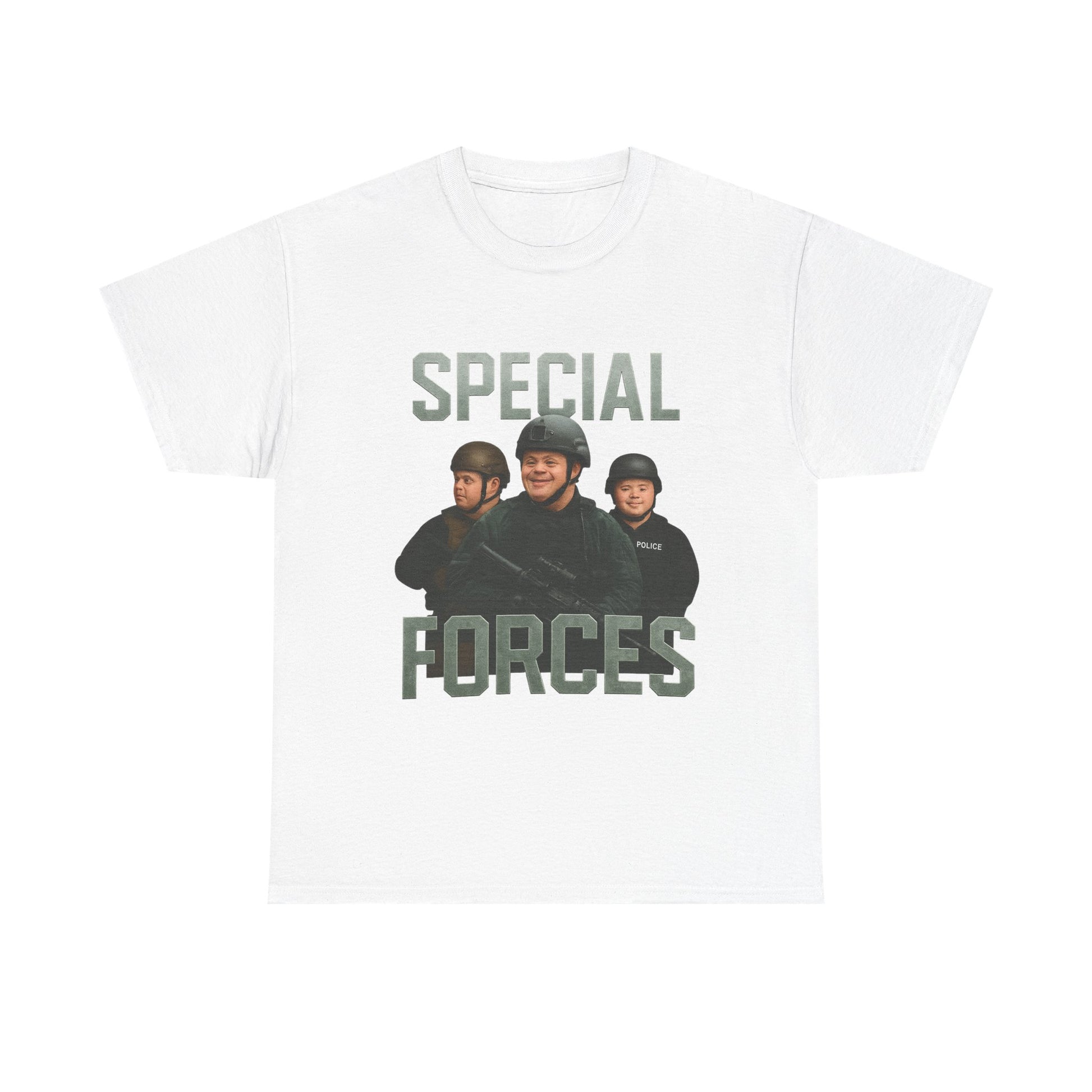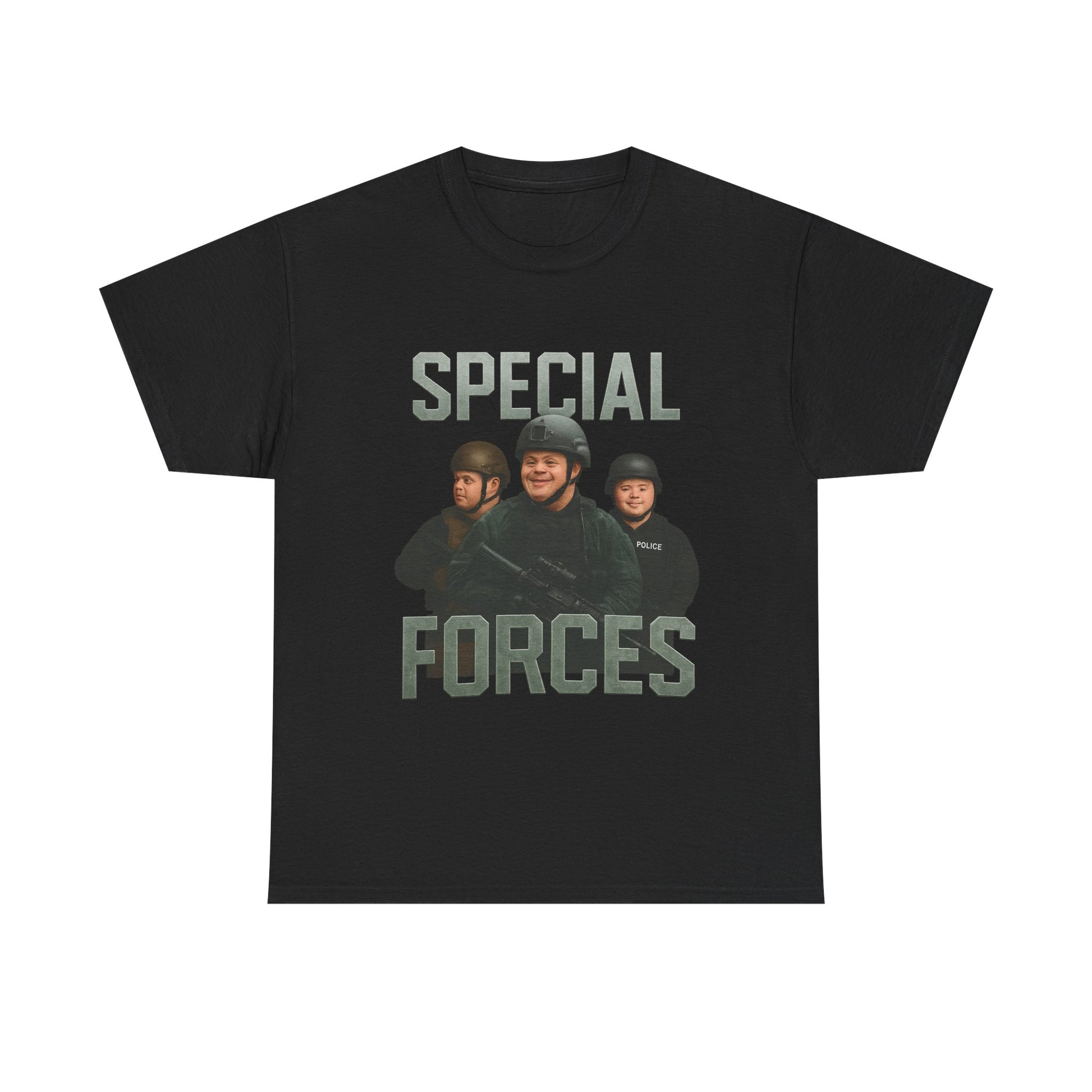 Step into strength and confidence with the Special Forces Tee. Featuring a powerful front graphic of three Special Forces members in tactical gear with the words “SPECIAL FORCES” in striking camouflage lettering, this shirt is made to stand out. Printed on a soft, durable cotton blend, it’s perfect for everyday wear, gym sessions, or casual street style.